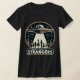 Not just another alien t-shirt, this item captures the whimsy of encountering the unknown with a flying saucer graphic that seems to hover right off the fabric. The playful warning, "Don't Talk to Strangers," adds a humourous twist to the otherwise mysterious and awe-inspiring theme of intergalactic travel and UFO lore.