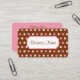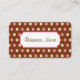 Pink and cream dots on a brown background give this business card retro style. Customise this business card to suit your needs by changing the information. Use these cute polk a dot business cards for a bakery, boutique, shop, ice cream shop, chocolatier, daycare, school, pre-school, salon, childcare, etc...The designs are from original art.