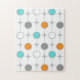 This customisable Retro Dots and Starbursts Puzzle design features (Wait for it.) a grid of colourful dots and starbursts. The vintage inspired turquoise; white, grey, and orange dots are separated by kitschy grey starbursts to form a geometric pattern. Customise the background colour on this mid century modern product if you're feeling daring, or leave it white if subdued is more your style. You're sure to enjoy our homage to the 1950s. Buy this today and be the coolest cat on your block.