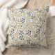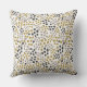 A contemporary throw pillow with a dotted pattern in black, gold and warm grey on an ivory background. Mid-century inspired.