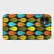 Retro pattern in orange, yellow, olive and aqua on a black background