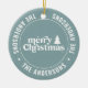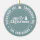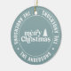 Retro dusty blue Christmas Modern Minimal Unique personalised family holiday home decor ornament design With modern hand drawn text and trees.