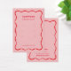 Earring display card featuring a red squiggle shape on a pink background. Template holes can be adjusted or deleted, as well as all your company information. Add your social media or website to the bottom.