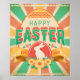 Retro look Easter egg hunt greeting card a bunny and flowers.