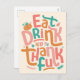 Retro Eat Drink And Be Thankful Happy Thanksgiving Holiday Postcard