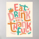 Retro Eat Drink And Be Thankful Happy Thanksgiving Poster