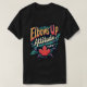 The background includes an energetic explosion-like pattern with teal, black, and purple jagged shapes radiating outward, adding a sense of movement. At the centre-bottom of the design, there is a large red maple leaf, which suggests a connection to Canada. The overall aesthetic is vibrant, with a mix of warm and cool tones, giving it a bold and dynamic retro vibe.