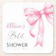 Retro Elegant Coquette Pink Bow Bridal Shower Square Paper Coaster