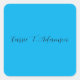 Retro Elegant Plain Sky Blue Calligraphy Name Square Sticker