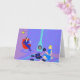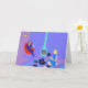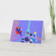 This Retro Evening at Home Greeting Card looks like a scene out of a 1960's romantic comedy. The minimalist design features an attractive cartoon couple in the living room of a mid century modern house. The room prominently features a purple and blue stone wall and a matching purple and blue striped rug. Against the wall, there is a turquoise, cone shaped fireplace with a roaring fire. In the corner, the suave man of the house is lounging in a red egg chair. He is wearing a blue suit with a blue tie. In one hand, he is holding a martini glass. No wonder he's so relaxed! Hanging from the ceiling, there is a yellow, Sputnik light fixture. A woman with an hourglass figure is sitting on the rug. She is wearing a vibrant, blue dress and not a hair is out of place in her flippy blonde "do". Beside her, on the floor, there is a blue and black portable record player. Several vinyl record albums are scattered near the beautiful deejay. Go ahead and sing along. You know you want to! The inside of the card is blank to allow for your own sentiment.