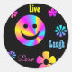 Retro rainbow face and flowers stickers, That say Live, Laugh, and love. You can change the words.
