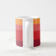 This awesome fall-toned coffee mug features four colour blocks across the background with the text "coffee" in the foreground. The colours represent autumn with golden yellow, melon, burnt orange, and chocolate brown. The word "coffee" is offset with multiple colours as well.