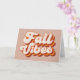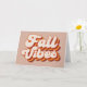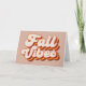 This retro-inspired fall design prominently features the phrase "Fall Vibes" in a bold, 3D-style font that immediately grabs attention. The text is layered with warm autumn colours, including rich oranges, deep reds, and soft creams, creating a sense of depth and dimension that makes the words pop off the background. The vintage-style typography with its soft, rounded edges gives the design a nostalgic feel, reminiscent of classic 1970s aesthetics. The playful shadows and colour contrasts add to the design's dynamic, eye-catching appeal.