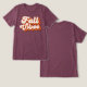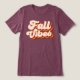 This retro-inspired fall design prominently features the phrase "Fall Vibes" in a bold, 3D-style font that immediately grabs attention. The text is layered with warm autumn colours, including rich oranges, deep reds, and soft creams, creating a sense of depth and dimension that makes the words pop off the background. The vintage-style typography with its soft, rounded edges gives the design a nostalgic feel, reminiscent of classic 1970s aesthetics. The playful shadows and colour contrasts add to the design's dynamic, eye-catching appeal.