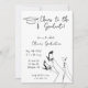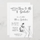 Retro scribble Graduation Party invitation featuring grad hat and legs with heels and cocktail glass.