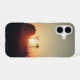 A stylized illustration depicting a lone farm structure perched on a hill, dramatically lit by the warm glow of the breaking dawn.