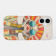 A phone case popping with retro fashion and glam, this design has a beautiful woman in a colorful striped orange and yellow wide brimmed hat with sophisticated sunglasses and her chin resting in her hands. Her stylish outfit has large polka dots in orange with yellow and aqua accents. Her lips are perfectly made up and she looks ready for the runway or a social time out on the town. A text template is included to personalize with your monogram initials. This is a fun case for ladies or girls who love fashion and beauty.