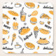 Retro Fast Food Hand Drawn Sketch Pattern Square Paper Coaster