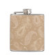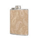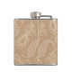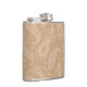 The flask itself is fine. It’s a cheap flask, obviously bought in bulk, however am prepared to overlook that. Given that it is a personalized item, I would have liked to have seen gift boxing instead of the generic packaging. Terrible printing, and/or quality. It’s a cheap, tacky vinyl. It is not cut straight and is also applied in a way that it is overhanging the bottom, causing the glue to catch on items and it will eventually roll and tear, damaging the wrap.