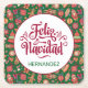 Retro Feliz Navidad Personalised Square Paper Coaster