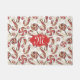 Retro Festive Cute Red Candy Cane Pattern Monogram Doormat