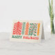 This vibrant holiday card embraces a retro design featuring a series of stylised trees in shades of red, orange, and green, each with its own unique, decorative pattern. The trees are adorned with stars, berries, and festive branches, evoking a sense of holiday cheer and whimsy. The words "Happy Holidays" are displayed in bold, playful font at the bottom, adding a nostalgic touch to this delightful design. Perfect for sending joyful greetings during the festive season with a vintage flair.