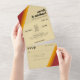Red, orange and tan brown all in one wedding invitation with corner with stripe. Personalise it by adding your event details.