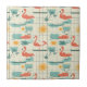 Retro Flamingo Poolside Summer Pattern (3) Ceramic Tile