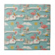Retro Flamingo Poolside Summer Pattern (6) Ceramic Tile