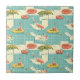 Retro Flamingo Poolside Summer Pattern (7) Ceramic Tile
