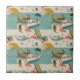 Retro Flamingo Poolside Summer Pattern (8) Ceramic Tile