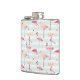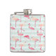Retro Flamingos On Mint Stripes Hip Flask