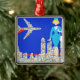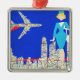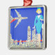 When you see this Retro Flight Attendant Christmas Ornament, it will be love at first flight! The design features a royal blue background with a city skyline and aeroplane made from a vintage roadmap. There is also a minimalist cartoon drawing of a 1960's flight attendant, complete with an aqua uniform and pillbox hat. This is a perfect gift for flight attendants, frequent flyers and anyone who loves vintage glamour.