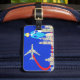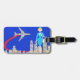When you see this Customisable Retro Flight Attendant Luggage Tag it will be love at first flight! The front design features a royal blue background with a city skyline and aeroplane made from a vintage roadmap. There is also a minimalist cartoon drawing of a 1960's flight attendant, complete with an aqua uniform and pillbox hat. The opposite side features a royal blue background and plenty of room for customising. Simply click on the "Customise It" icon and replace the existing text with your own. It's easy! This is a perfect gift for flight attendants, frequent flyers and anyone who loves vintage glamour.
