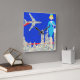 Regardless of where you put this Love at First Flight Retro Flight Attendant Wall Clock, you'll have the cutest clock for miles around. The design features a royal blue background with a city skyline and aeroplane made from a vintage roadmap. There is also a minimalist cartoon drawing of a 1960's flight attendant, complete with an aqua uniform and pillbox hat. This is a perfect gift for flight attendants, frequent flyers and anyone who loves vintage glamour.
