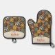 Retro Floral Brown Gold Teal Personalised Oven Mitt & Pot Holder Set