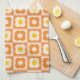 Retro Floral Chequered Pattern Yellow, Orange Tea Towel