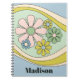 Floral Daydream Retro 60s Groovy Flower Design in Pastel Pink Blue Green Chartreuse Notebook. Cute, pretty, fun vintage aesthetic flower pattern with a 1960s and 70s hippie flower power vibe. Name text can be personalised / customised. By Kierkegaard Design Studio.