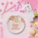 Retro Floral Four ever groovy 4th birthday Paper Plate