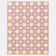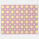 Towels with a retro floral pattern hang on a rod. The design features yellow circles on pink, accented by starburst shapes, evoking a playful vintage vibe.