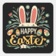 Retro Floral Happy Easter Bunny Boho Spring Square Sticker