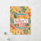 This Father's Day card showcases a cheerful, retro-inspired floral pattern in vibrant shades of orange, yellow, and teal, accented by a central banner design. The message "Happy Father's Day" is prominently displayed within the banner, presented in a bold, stylised font. This card provides a delightful and nostalgic means of celebrating the holiday, and is offered as a downloadable and printable option for added convenience.