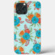Retro floral iPhone 13 Pro Max Case with teal, orange and coral colour palette.