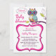Retro Floral Owl Hot Pink Baby Shower Invitation