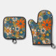 Retro Floral Pattern 60s 70s Aesthetic Oven Mitt & Pot Holder Set