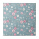 Retro floral pattern. Pink and white flowers on a muted grayish-blue background.