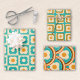 Retro Floral Pattern Teal, Cream, Orange Wrapping Paper Sheet