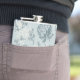 The flask itself is fine. It’s a cheap flask, obviously bought in bulk, however am prepared to overlook that. Given that it is a personalized item, I would have liked to have seen gift boxing instead of the generic packaging. Terrible printing, and/or quality. It’s a cheap, tacky vinyl. It is not cut straight and is also applied in a way that it is overhanging the bottom, causing the glue to catch on items and it will eventually roll and tear, damaging the wrap.