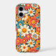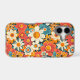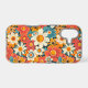 Bright, bold, and full of personality — this retro floral phone case features vibrant daisy-style flowers in orange, yellow, coral, and teal with a rustic wood name band for a personal touch.