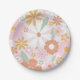 Retro inspired Young Wild and Three 3rd birthday plates with 70's style flowers and boho fonts and colours.